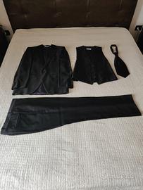 Completo di giacca, pantalone, gilet, cravatta, porta abito.