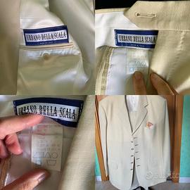 Abito da sposo indossato una sola volta e in perfette condizioni. Ha ancora la sacca originale , la gruccia e le etichette originali. Urbano Della Scala. Nella mia vetrina trovi in vendita anche la camicia di seta, la cravatta e il gilet.