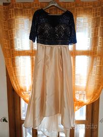 abito da cerimonia. bellissimo e indossato un solo giorno. quindi è nuovissimo. comprato in una boutique. marca marfil Barcellona. intero con chiusura dietro. colore blu scuro sopra e il di sotto rosa antico