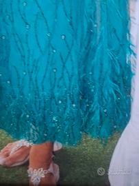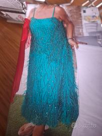 vendo abito da cerimonia sartoriale interamente cucito a mano in quanto tempestato di pietre e piume e foderato. Taglia 48 vestibilità confortevole tessuto che non sgualcisce.Adatto per una cerimonia o semplicemente per un ' occasione nella quale non vogliate passare inosservate .Indossato una sola volta quindi in ottimo stato.
