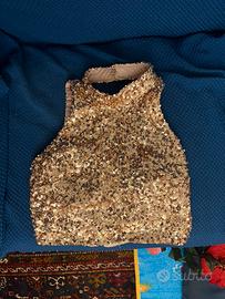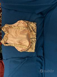 Abito da cerimonia molto fresco estivo primaverile , color salmone la gomma con strascico , corpetto con paillettes color oro chiaro , usato una sola volta comprato da coitier Gonna veste in vita una 42 , consigliato con un minimo di tacco , la mia ragazza è alta 1.78 m ma puo essere sistemato sia in altezza che giro vita . Pagato per entrambi i pezzi 450€ nuovo , svendo a 200€, potete venire a vederlo e provarlo di persona , zona ponte lanciani roma . Oppure possibiltia di spedizione