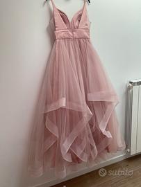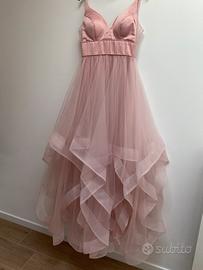 Vendo splendido abito elegante color rosa cipria, ideale per cerimonie, matrimoni, feste o occasioni speciali. Corpetto con scollo a cuore e spalline sottili che valorizzano la figura, abbinato a una gonna in tulle a più strati con taglio asimmetrico (più corto davanti e lungo dietro), molto elegante e d’effetto. Le spalline sono state adattate da una sarta per una vestibilità migliore (prima risultavano larghe). Indossato pochissimo, in condizioni pari al nuovo, senza difetti. 📏 Misure: ✔ Girovita: 70 cm ✔ Lunghezza: circa 125 cm ✔ Coppa seno: dalla B alla C Perfetto per un look romantico ed elegante ✨ ✔ Colore: rosa cipria ✔ Tessuto: tulle ✔ Condizioni: pari al nuovo 💰 Prezzo: 150€ No consegna a mano si per spedizione tracciata