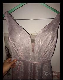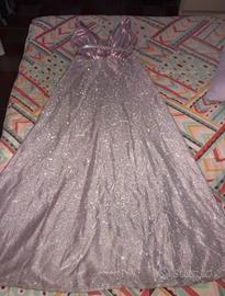 abito da cerimonia lungo viola/lilla con brillantini. usato una volta, lavato e disinfettato. Busto 90 cm vita 80 cm Fianchi 100 cm Lunghezza 165 cm