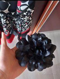 Abito elegante e da cerimonia, originale e comprato in boutique. Utilizzato una sola volta per un matrimonio. Ha la cerniera laterale e un cordoncino con un fiore nero da legare alla vita. Marca Made in Italy L / IT 44 /EU 40 Poliestere