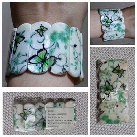 -Bracciale vintage stile orientale, bianco con stampa farfalle e fiori verdi, mai usato.