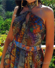 Taglia 44, multicolor, lungo e con scollo all'americana.
