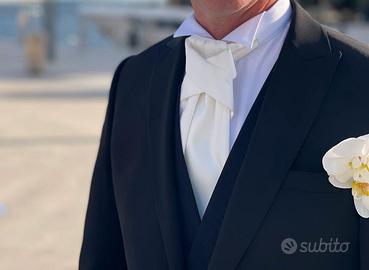 Vendo bellissimo abito uomo da matrimonio, cerimonia, usato solo una volta. l'abito comprende la giacca, il gilet e i pantaloni, in omaggio aggiungo la cravatta bianca come da foto. Taglia 50. Girovita pantaloni 92 cm, spalle 46 cm, ascelle 52,5 cm vita giacca 49 cm. La lunghezza totale dei pantaloni 97 cm. Mio marito è alto 176cm il giorno del matrimonio pesava 77 kg.