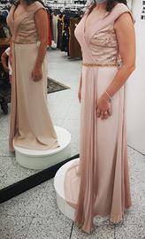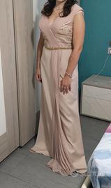 Vendo abito per cerimonia/eventi ( atelier per cerimonie da sartoria italiana ) taglia 46, drappeggio zona decollete con strass e paillettes pagato 400 euro modificato per una persona alta da 1.60 o 1.68 ( modifica pagata 40 euro )
