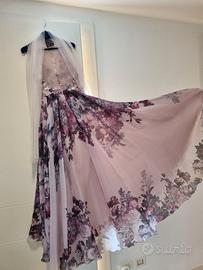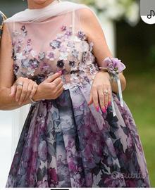 Vendo splendido abito da cerimonia usato una sola volta per il mio 25esimo di matrimonio della Musani Couture. Il vestito di pura seta e applicazioni in stoffa e strass come da foto sul corpetto ha taglia 44/46 ed io sono alta 1.67, il vestito è in perfette condizioni e il suo prezzo originale era di 1000 euro io lo vendo per 400 euro.
