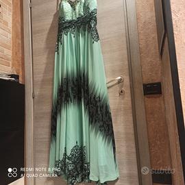 vendo bellissimo abito da cerimonia in crepe,verde Tiffany,taglia 50,con borsa uguale.Indossato 1 sola volta.Comprato a 180 euro,vendo a 60 euro.Possibilita di misurare senza impegno,zona Marigliano( Na).