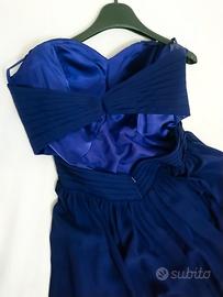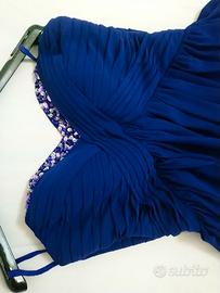 Abito da cerimonia nuovo mai usato viola color uva con federa tessuto prezioso con corpetto impreziosito da perline, taglio a impero, completo di giacchino coprispalle, taglia 42/44 senza spalline.