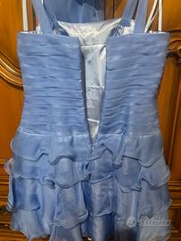 Abito da cerimonia corto al ginocchio, sbarazzino, colore carta da zucchero, foderato internamente. Stola abbinata. Taglia 42/ 44 circa. Misura spagnola 40 corrispondente a una M italiana. Marca Daniella Nova Collection. Usato una sola volta, come nuovo