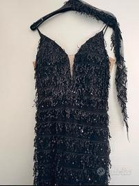 Vendo abito da cerimonia nero con paillettes lungo stretto a sirena ,non elasticizzato con effetto charleston, con coppe imbottite, marca christian koehelert taglia 38 sono alta 1,56 e indossato con tacchi alti 12/13 cm eventualmente ce un po di tessuto in piu per aggiungerlo in fondo al bordo
