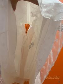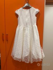 Bellissimo abito da cerimonia per bambina di circa 4/5/6 anni, ideale per occasioni speciali. L'abito è bianco panna ed è decorato con piccoli fiori ricamati.