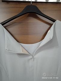 Vendo abito da cerimonia color grigio perla in crespo, marca OLTRE. In fondo al vestito ha dei spicchi a balze come si vede in foto. Ha piccole spalline e mantella in chiffon leggerissima. Tg. 46/48 circa. Lunghezza 180cm. PER INFO CONTATTARE LA CHAT NO SPEDIZIONE GRAZIE