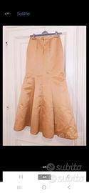 Vendo abito da cerimonia taglia 42 color champagne .Modello composto da corpetto ricamato con perline ed intrecciato dietro più gonna a sirena. Indossato una volta sola in occasione di un matrimonio, condizioni pari al nuovo .