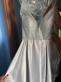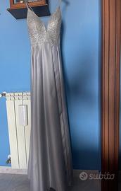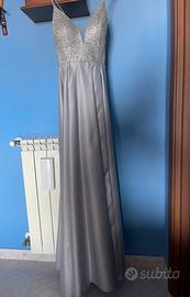 Abito da cerimonia colore argento con parte superiore brillantinata.