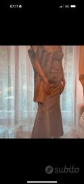 Gonna lunga, modello a sirena e bellissima stola abbinata dello stesso materiale. praticamente nuovo, indossato una sola volta, ideale per cerimonie ma anche come abito da sera per eventi speciali. Il giro seno del corsetto misura 86 cm, non da indossato. Ma è un corsetto con i lacci dietro quindi regolabile a seconda della misura del seno, si può stringere o allargare. Giro vita 76, giro fianchi 100. La gonna è lunga