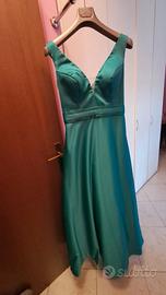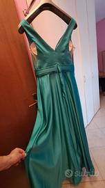 ABITO LUNGO COLOR VERDE SMERALDO ORIGINALE "BELLA VENUS" CON SOTTOGONNA IN TULLE, TAGLIA M, INDOSSATO DUE VOLTE, COMPLETO DI COPRISPALLE E FERMACOPRISPALLE, VENDO