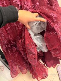 Abito da cerimonia-sposa rosso bordeaux taglia XL veste comodo e di stringe dietro con i laccetti. Pagato il doppio quindi l’ho già mooooolto scontato, sul prezzo non tratto. Con l’abito viene fornita anche la custodia protettiva.