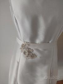 Abito in seta taglia 42 senza maniche e corto. Colore bianco perla. Semplice ma molto elegante. Con possibilità di stola in seta.