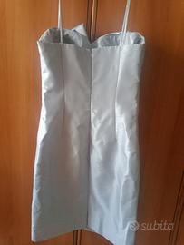 vendo bellissimo e nuovo ( mai usato) abito da cerimonia taglia 44 in raso azzurro- argentato. meraviglioso il corpetto completo di bolerino -coprispalle in regalo coppia di spalline e tessuto per cucire eventuali spalline. lunghezza vestito cm 82 perfetto come da foto