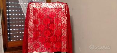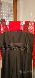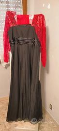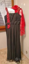 vendo abito da cerimonia indossato solo 1 volta con lavorazione e applicazioni rosse completa l'abito uno scialle e uno spolverino in pizzo macramè
