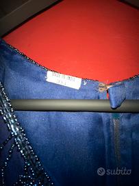 Blu notte,stile orientale (taglia indiana 3xl ma reale 44 europea) interamente ricamato a mano, altezza dalle spalle al bordo inferiore 140 cm