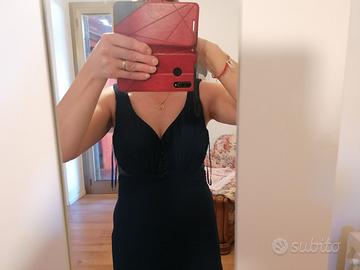 Abito elegante da cerimonia con coda, cerniera laterale, fodera in raso, usato solo 1 volta, con scarpe in tinta misura 40 tacco 7 cm