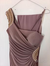 abito da cerimonia elegante e comodo, color tortora con dettagli in oro, taglia 44 Indossato 1 volta, lavato e riposto....quindi come nuovo