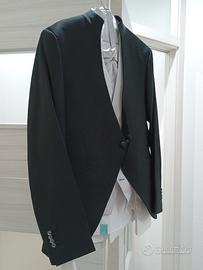 Vendo abito da cerimonia in ottime condizioni completo di giacca pantalone (neri)tagliaLgilet ,cravattone (ghiaccio)camicia bianca taglia L, scarpe nere numero 43.tutto in perfette condizioni.