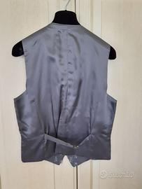 Vendo bellissimo abito da cerimonia uomo, colore grigio, composto da 4 pezzi: Giacca con 3 bottoni frontali e 4 sul polsino, Gilet con 6 bottoni, Cravattino e Pantaloni.