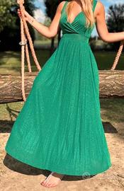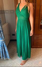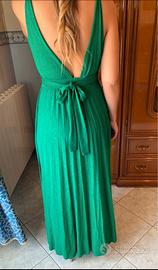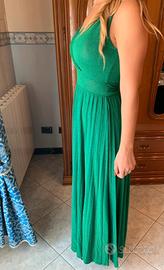 Bellissimo abito da cerimonia verde, molto fluido e comodo. Si adatta anche di una due taglie in quanto molto morbido. Nuovo indossato solo per un matrimonio.