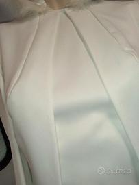 l'abito presentava una parte di finta pelliccia bianca frontale e dietro che è stata rimossa