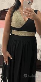Abito da cerimonia taglia 44-46 colore nero e oro a giro maniche. Con copri spalla nero velato a parte e stola oro abbinabile al vestito, venduti sia insieme che da parte. In perfette condizioni.