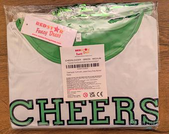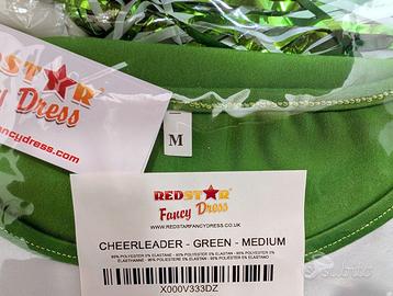 Abito da cheerleader con pompon - colore VERDE / taglia M donna - per feste in maschera o per eventi di Carnevale - Cosplay - Halloween