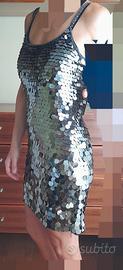 Abito da cocktail, taglia S,in paillettes grigio argento,mai usato,vestibilità comoda.