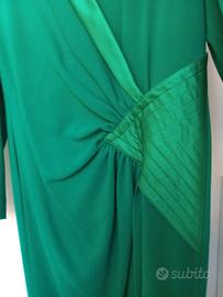 abito elegante verde smeraldo, fresco lana e raso, taglia 42 morbida, lunghezza sotto ginocchio. Sartoria Leonia tessuto made in Italy. Praticamente nuovo.