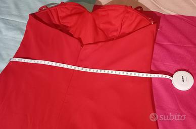Abito da damigella/matrimonio/sera con stola LE DAMIGELLE DI CAROLINE M.(MUSANI COUTURE), in poliestere e chiffon, colore rosso corallo intenso, foderato, coppe imbottite, taglia 46 con piccola coda, indossato 1 SOLA VOLTA per un MATRIMONIO e ovviamente lavato, condizioni perfette. Io sono alta mt. 1,67 e indossavo tacco cm.8