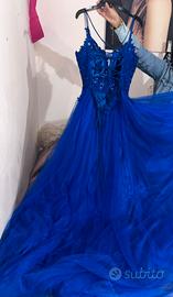 Salve, vendo questo bellissimo abito da diciottesimo blu elettrico, con spacco laterale, in pizzo a corsetto allacciato da dietro dietro.