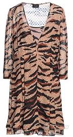 Abito corto in fil coupé con scolo a V e maniche a tre quarti.