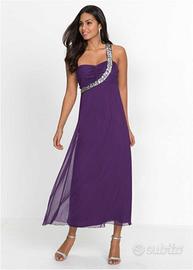 Gradevole abito in chiffon con applicazione di strass indossato solo una volta adatto a cerimonie crociere feste di fine anno taglia 50