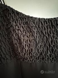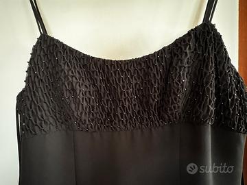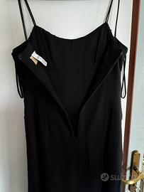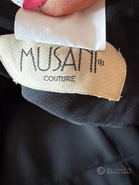 Questo abito da sera nero è un esempio dello stile ricercato di Musani Couture, un marchio noto per la sua sartorialità che fonde tradizione e sperimentazione. Caratteristiche del design L'abito presenta una silhouette scivolata con spalline sottili e un corpetto impreziosito da dettagli decorativi, tipico dei modelli "evening dress" del brand, pensati per occasioni formali e cerimonie. Musani utilizza spesso tessuti pregiati come seta, chiffon e velluto per valorizzare la figura con eleganza.