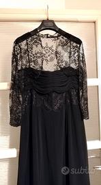 Splendido abito da sera, nero, lungo, marca "Claudio Lugli", dolcemente svasato, composto da abito con spalline sottili e bolero in pizzo, taglia indicata 46 italiana (XL) , ma più adatto ad una 44 (L), utilizzato solo due volte, tenuto con molta cura. Sono costretta a cederlo per cambio taglia.