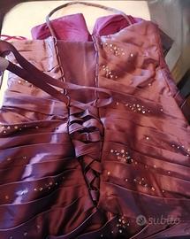 Abito sirena, bordeaux, con stola. Donna elegante, da cerimonia, il taglio aderente ed il fondo svasato creano una silhouette sofisticata. Taglia 44, ottima vestibilità, adattabile fino a 2 taglie in più grazie al dettaglio della schiena allacciato, con lacci. Tutto il bustino è increspato e decorato con perline, con scollo a cuore. Pezzo indossato una volta solamente.