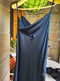 Abito da sera lungo, LA PERLA di seta, blu polvere/ aviatore ( si veda foto). Nuovo, con etichetta. Taglia 1. Spacco sul retro del vestito. Spalline e particolare onda sullo scollo. NON SPEDIAMO. SIAMO A BOLOGNA