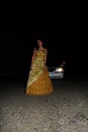 Vendo abito da sera lungo color oro, elegante e scenografico, perfetto per cerimonie, feste importanti, balli, eventi o diciottesimi.