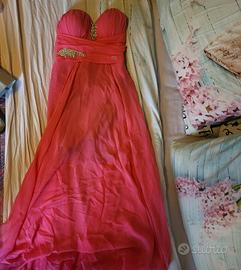splendido abito da sera fuxia con dettagli di strass nuovo con cartellino