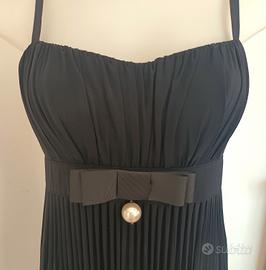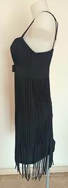 Abito da sera colore nero taglia 44 scarsa veste anche una 42 abbondante spalline regolabili reggiseno leggermente imbottito cerniera posteriore decorazione con nastro in gro e falsa perla e frange