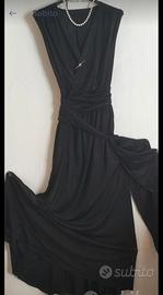Abito da sera nero Lunghezza a partire dalle spalle cm 130. Circonferenza seno 82 cm, circonferenza vita 66 cm, circonferenza fianchi 94 cm. Cucito su mi sura in sartoria. Fusciacca in vita cucita. Zip laterale.